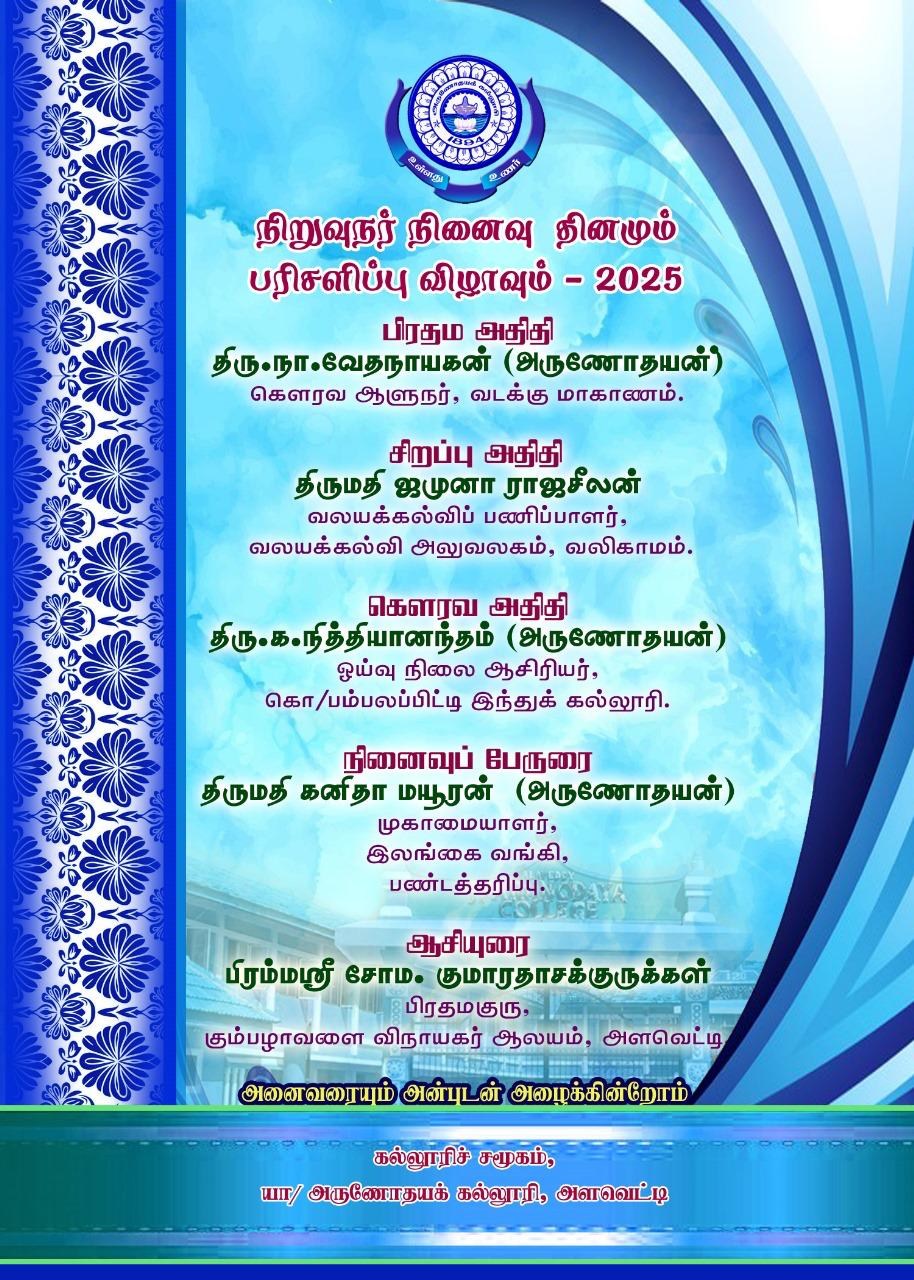 வருடாந்த பரிசளிப்பு விழாவிற்கு அனைவரையும் அன்புடன் அழைக்கின்றாம்.