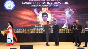 சிதம்பரா கணிதப்போட்டி 2024 இல் வெற்றியீட்டி July 12,2025 இலண்டனில் நடைபெற்ற விருது வழங்கும் விழாவில் எமது பாடசாலை மாணவன் இராஜ்கோபி ஆருஜன் பங்குபற்றி விருதினைப்பெற்றுக்கொண்டார்.